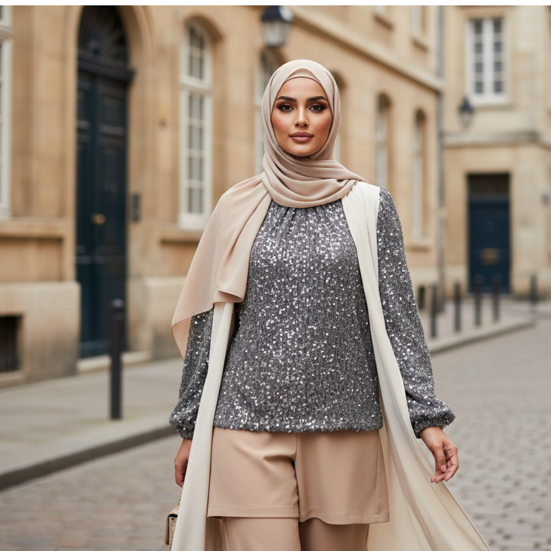Illuminate your winter with refined brilliance. The Silver Glow Sweater envelops you in soft warmth and delicate sequins, blending comfort and glamour for effortless sophistication. Enjoy an exclusive 50% discount.